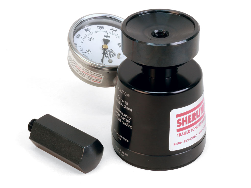 Sherline's Trailer Tongue Weight Scale is designed to confirm the tongue weight of cargo or RV trailers before hauling. Proper tongue weight is essential for safe handling on the highway. It should be 10% to 15% of the total trailer weight. Too much weight on the tongue and you can damage the hitch or trailer tongue, while too little weight on the hitch can cause dangerous or even fatal trailer fishtailing. Measuring tongue weight directly at the hitch ball receiver or jack stand is the only way to be sure you are loaded properly. This compact scale has also been speced into many interesting industrial uses, such as measuring the roller pressure in the printing presses of the Washington Post newspaper. |